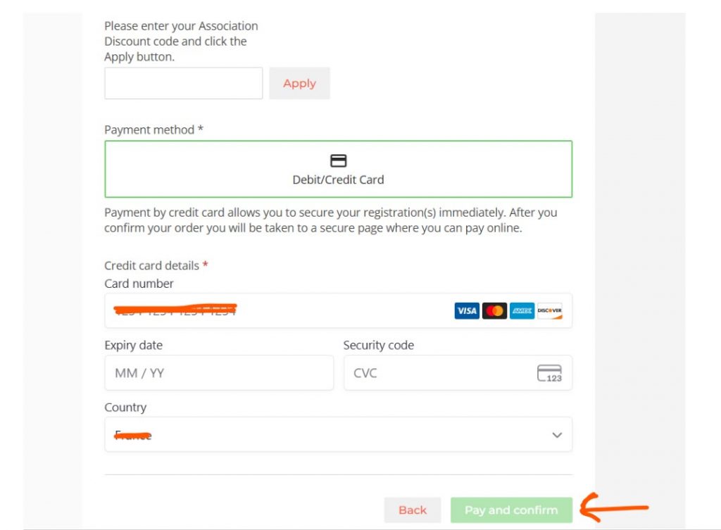 Next enter your Card details and click “Pay and confirm”.